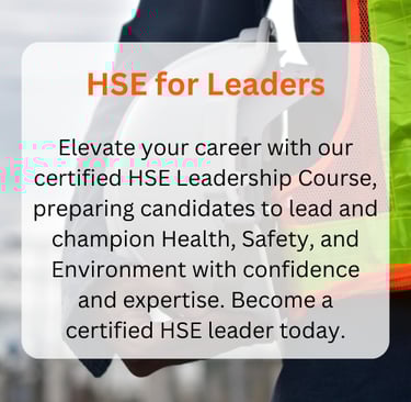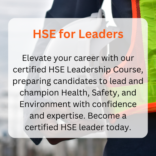 Elevate your career with our certified HSE Leadership Course, preparing candidates to lead and champion Health, Safety, and Environment with confidence and expertise. Become a certified HSE leader today.