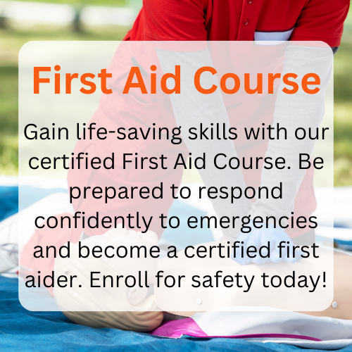 Gain life-saving skills with our certified First Aid Course. Be prepared to respond confidently to emergencies and become a certified first aider. Enroll for safety today!