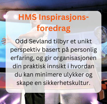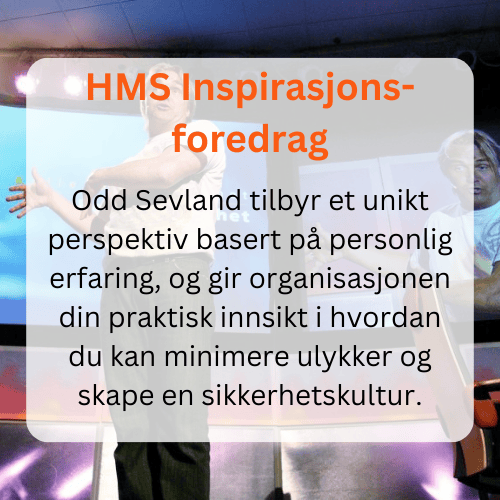 Odd Sevland tilbyr et unikt perspektiv basert på personlig erfaring, og gir organisasjonen din praktisk innsikt i hvordan du kan minimere ulykker og skape en sikkerhetskultur.