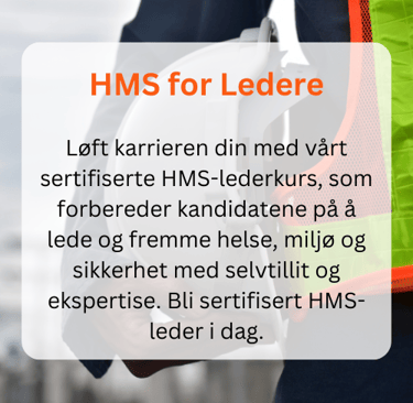 Løft karrieren din med vårt sertifiserte HMS-lederkurs, som forbereder kandidatene på å lede og fremme helse, miljø og sikkerhet med selvtillit og ekspertise. Bli sertifisert HMS-leder i dag.